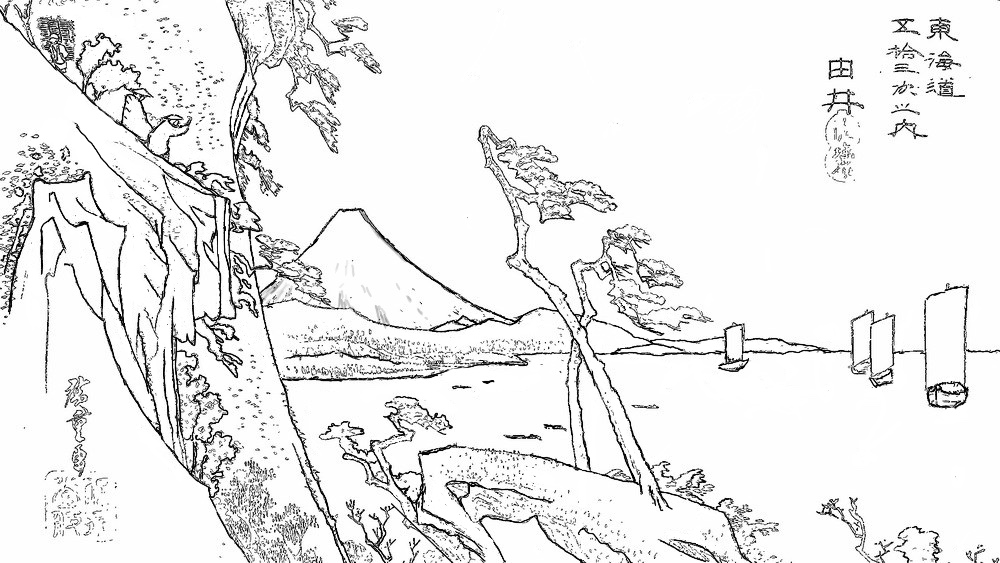 #東海道五十三次#富士山#浮世絵#高齢者用無料塗り絵プリント