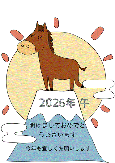 馬年の年賀状1|高齢者用大人の塗り絵無料プリント
