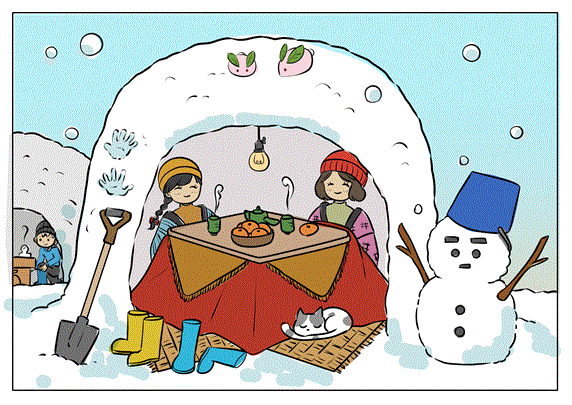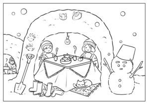 子供達とかまくら|高齢者用塗り絵無料プリント
