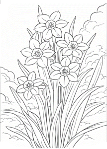 花の種類が多いのでカラフルに花を描いて塗り絵を完成してみましょう
