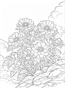 花の種類が多いのでカラフルに花を描いて塗り絵を完成してみましょう