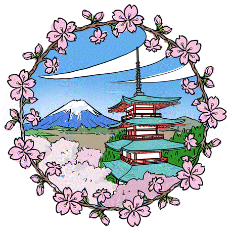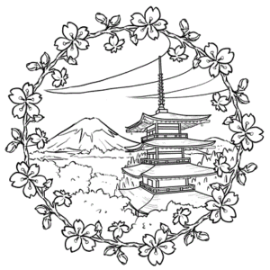 桜と富士山と五重塔|高齢者用塗り絵無料プリント