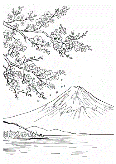 桜と富士山|高齢者用塗り絵無料プリント