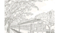 桜と電車|高齢者用塗り絵無料プリント