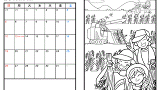 カレンダー10月カレンダー家族で稲刈り|高齢者用大人の塗り絵無料プリント 【ダウンロードはこちらから】 カレンダー稲刈り⇦PDFプリント印刷 9月10月イベントへ ぬりえの力TOPへ2025.10.09カレンダー